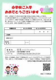 小学校ご入学のお祝いを差し上げます!